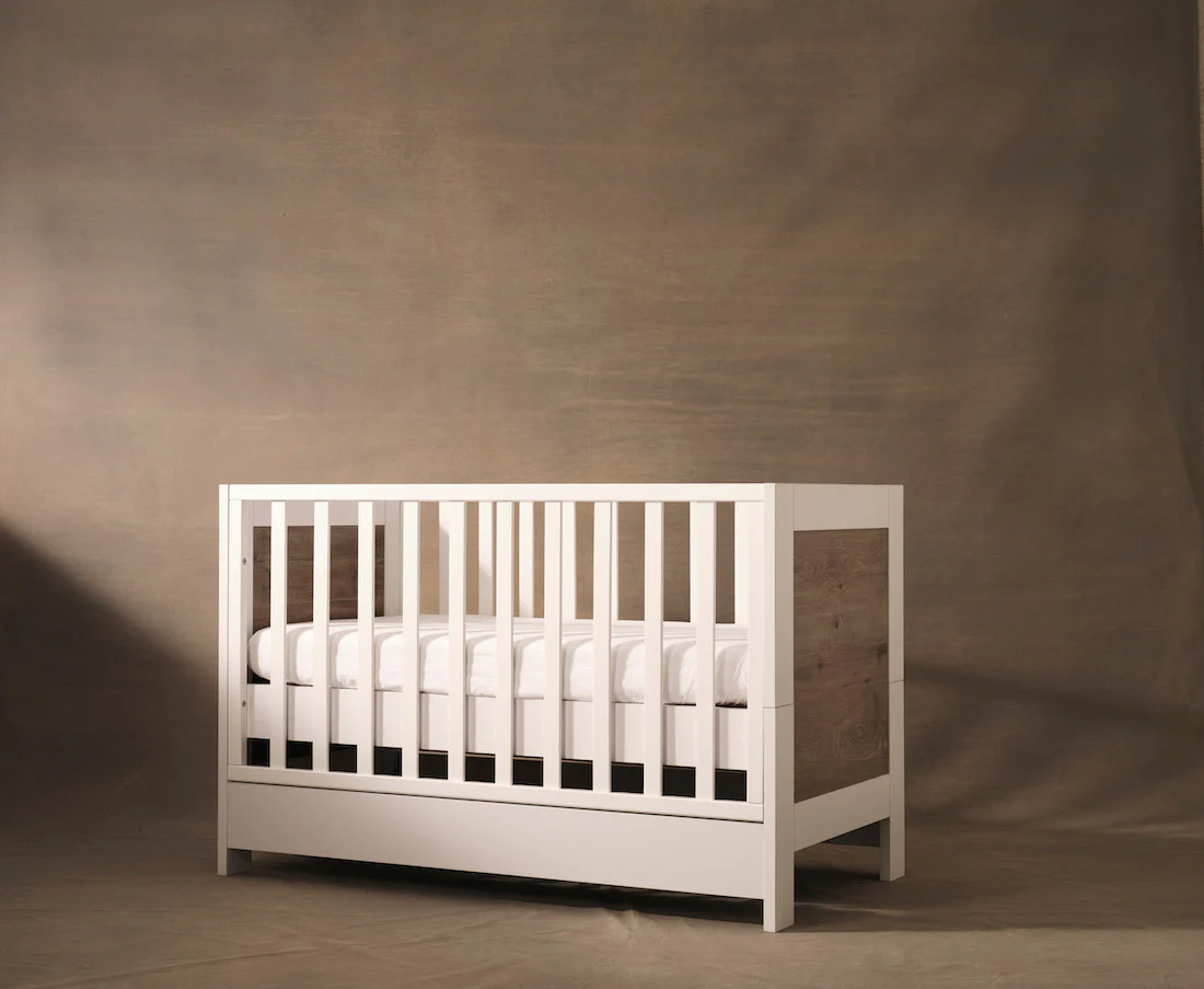 The Elyse Cot uses clean lines and contrasting timber panels to elevate your nursery. It is manufactured from Radiata Pine Timber, as well as Melamine and LVL materials.